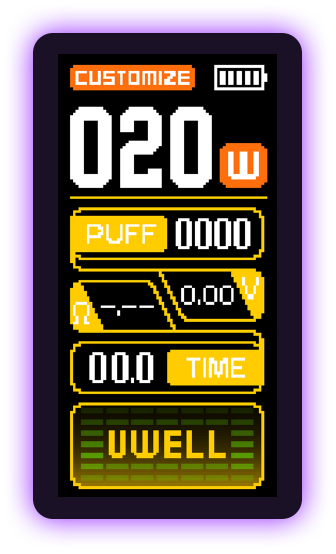 Customize your own parameters under the chosen mode. Savor the different tastes and rich layers of the atomized e-liquid as you like.